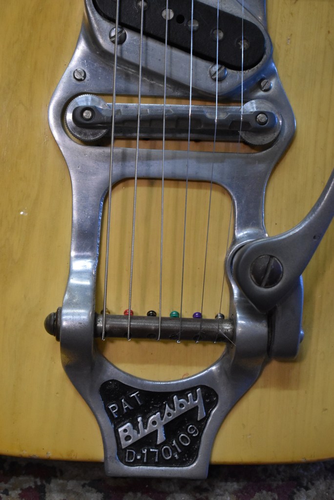 While I do enjoy dabbling in the odd and obscure as much as the next millennial, this week we’re going to get into the good stuff. The kind of top shelf stash that eludes many and whose significance has resulted in as many hit records as divorces. In the past, this blog has been dedicated to generalities about interesting brands and guitar lines, but this time we’re going to take a look at one instrument in particular — a bitchin’ Butterscotch Blonde 1954 Fender Telecaster with Bigsby B-16 Vibrato.