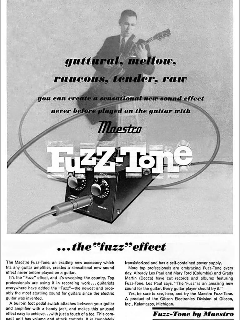 Around the same time, other companies began exploring the possibilities of standalone effects pedals. In 1962, the Maestro Fuzz-Tone FZ-1 hit the market, marking the birth of the fuzz pedal. This distortion effect pedal, powered by germanium transistors, would go on to shape the sound of rock music in the years to come.
