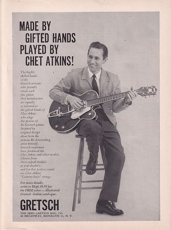 1954 marked a significant partnership for Gretsch when they collaborated with the legendary guitarist Chet Atkins. The result was the creation of the Gretsch Chet Atkins model, which became an instant classic. With its distinctive “Tennessean” and “Country Gentleman” variants, the Chet Atkins line helped define the “Gretsch Sound.” Artists like George Harrison and Brian Setzer would later adopt these models, cementing their status as rock ‘n’ roll icons.