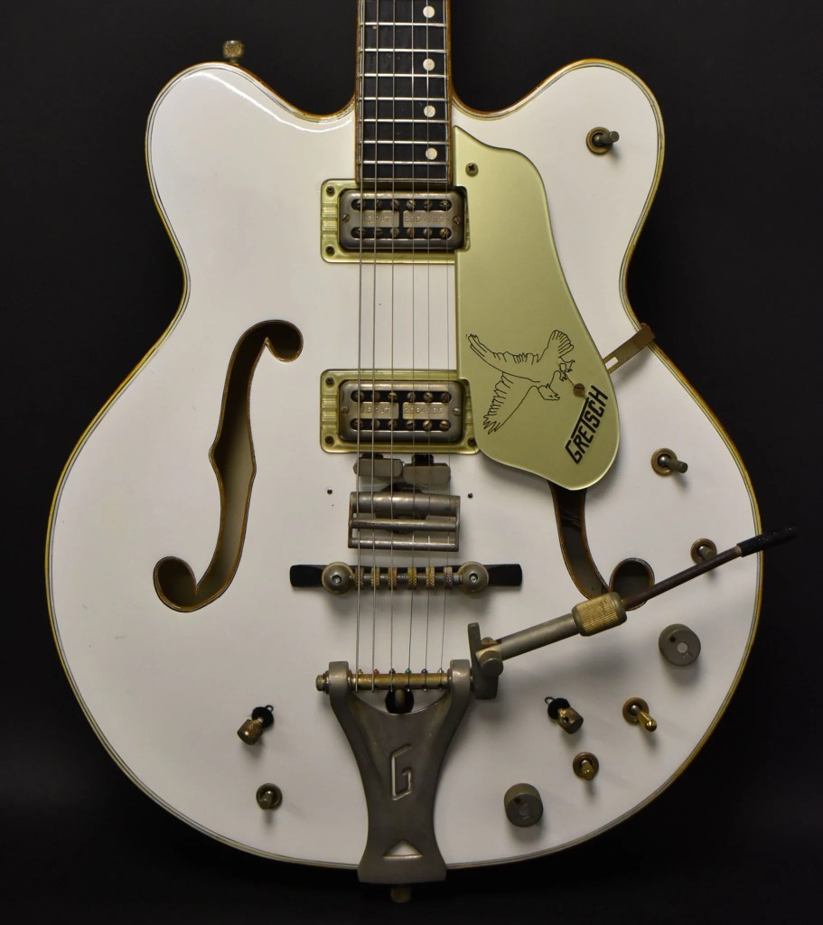 Gretsch also followed suit in the 60’s with a stereo option on certain models, as seen on this 1967 White Falcon. Stereo versions of particular Gretsch models as usually rare and not as commonly found as they are on Rickenbackers or even Gibsons. While the concepts in functionality were essentially shared between all manufacturers, these designs were certainly products of their era and coincided with the emerging stereo craze for recording in the studio and pressing albums on vinyl.