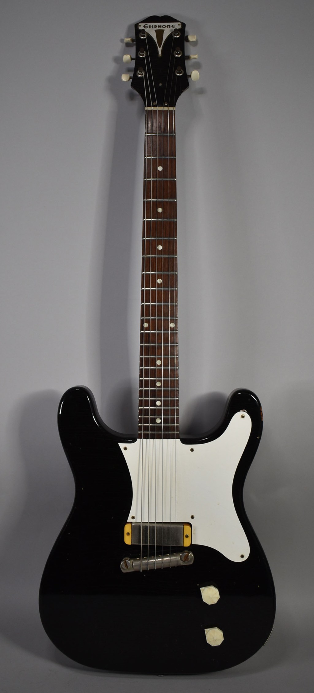 The Coronet is a significant model for Epiphone in general, marking the company’s foray into the solid-body electric guitar market during a pivotal time in music history. This early model, with its distinctive design and sound, has garnered a loyal following and remains a highly regarded instrument among collectors and musicians alike.