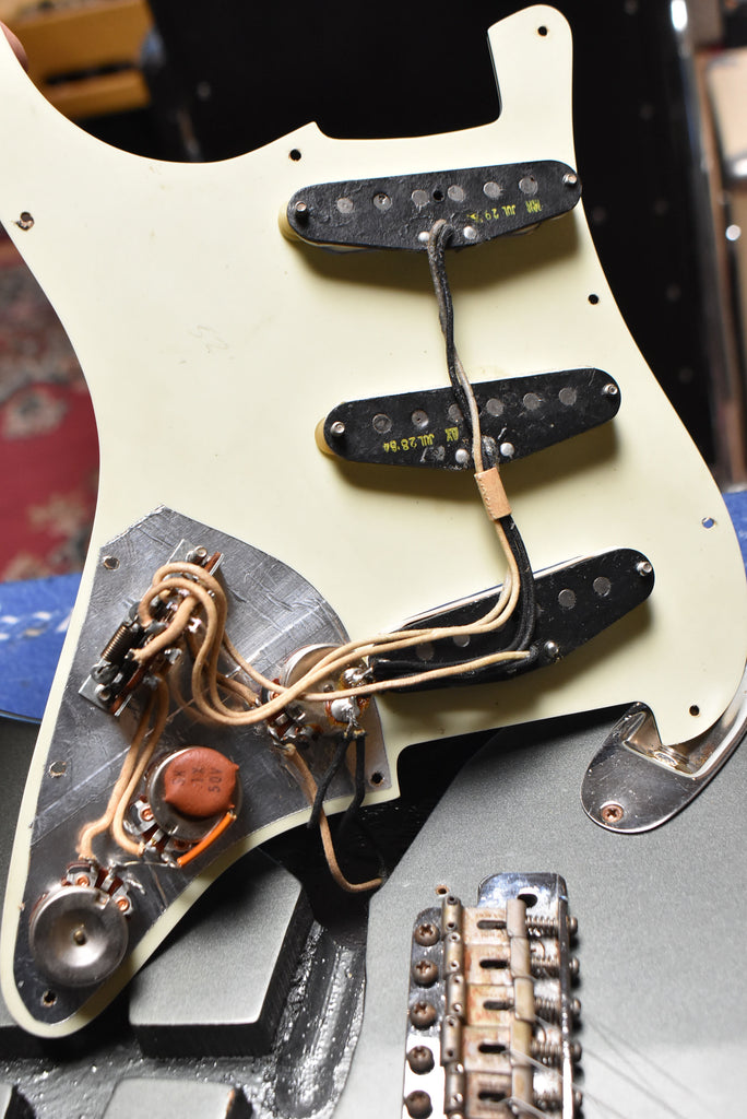 One of the standout features of this guitar is its set of original black bottom pickups. These single-coil pickups are celebrated for their clear, bright tone and excellent dynamic range. While the bridge pickup has been professionally rewound, it retains the character and sound quality that players expect from a vintage Stratocaster. The original electronics and cloth wiring further contribute to the guitar’s vintage tone and reliability.